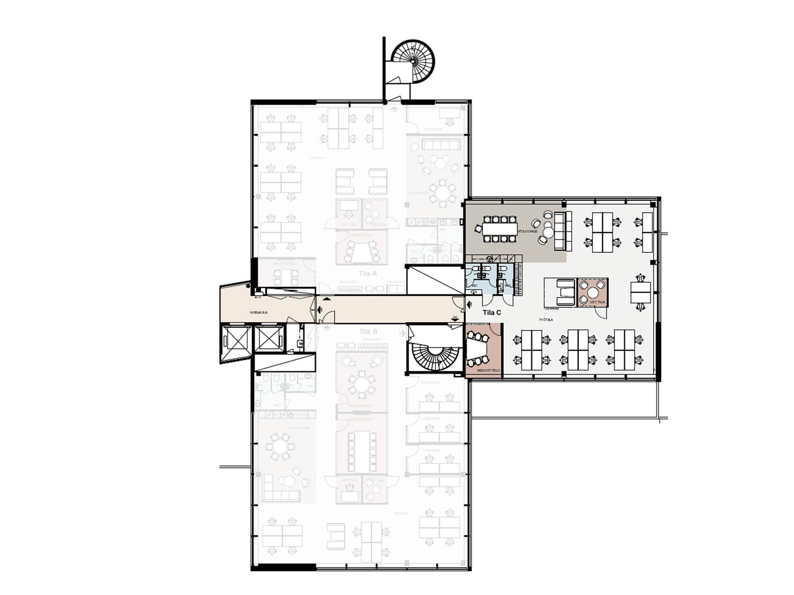 2 ravintolaa3 aulaaKuntosali10 vuokrattavaa neuvottelutilaaVuokrattava auditorioEdustussaunaGame Lounge