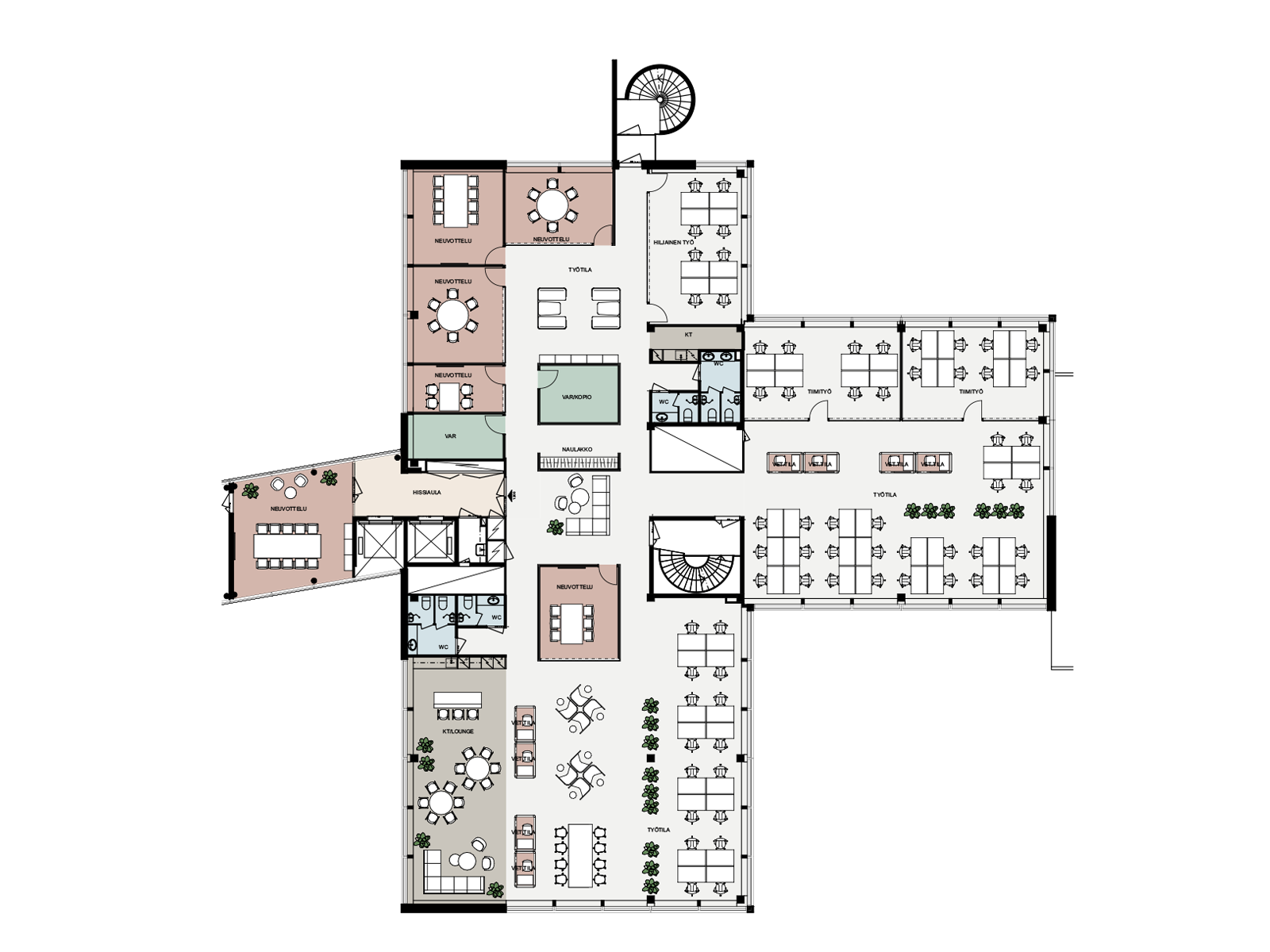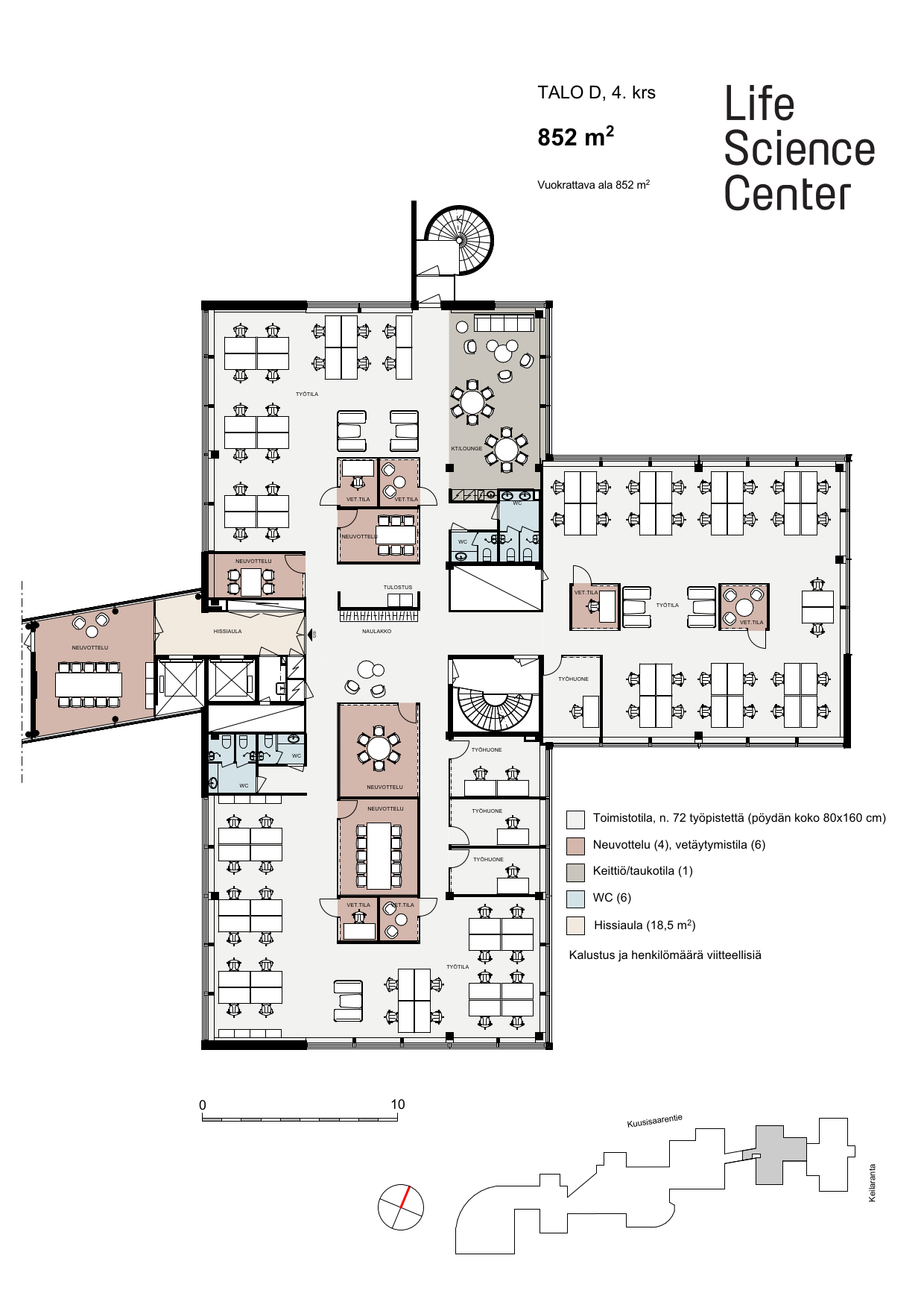 2 ravintolaa3 aulaaKuntosali10 vuokrattavaa neuvottelutilaaVuokrattava auditorioEdustussaunaGame Lounge